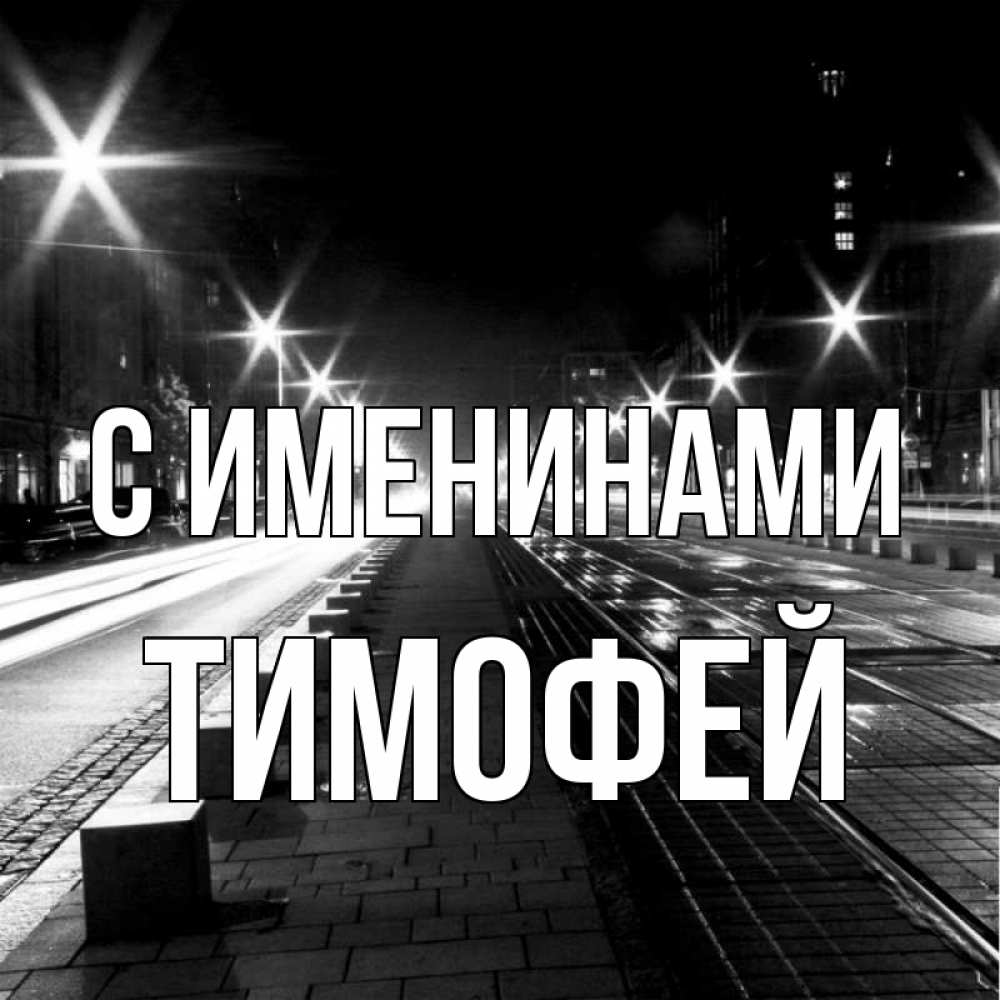 Открытка С именинами Тимофей. ночь улица фонарь. проспект