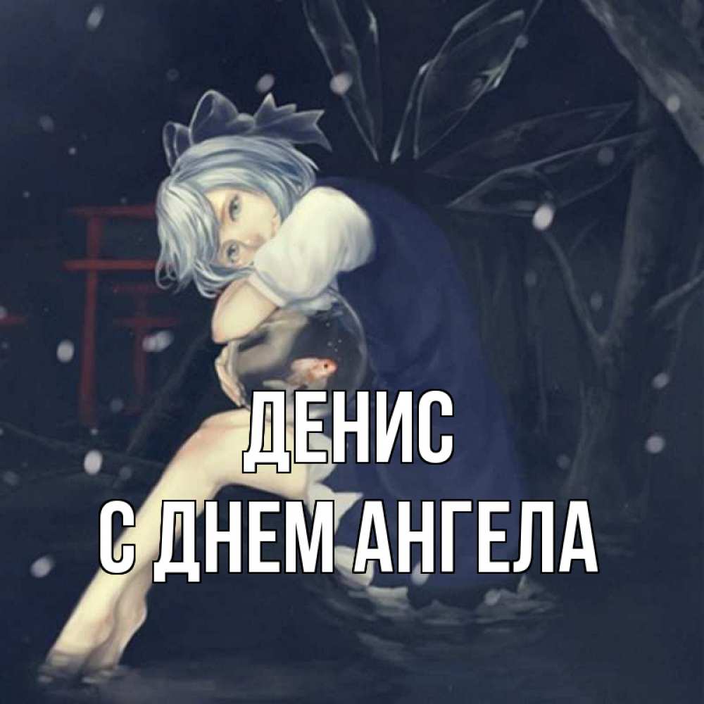 Открытка Денис С днем ангела. девочка скучает. рыбка в аквариуме