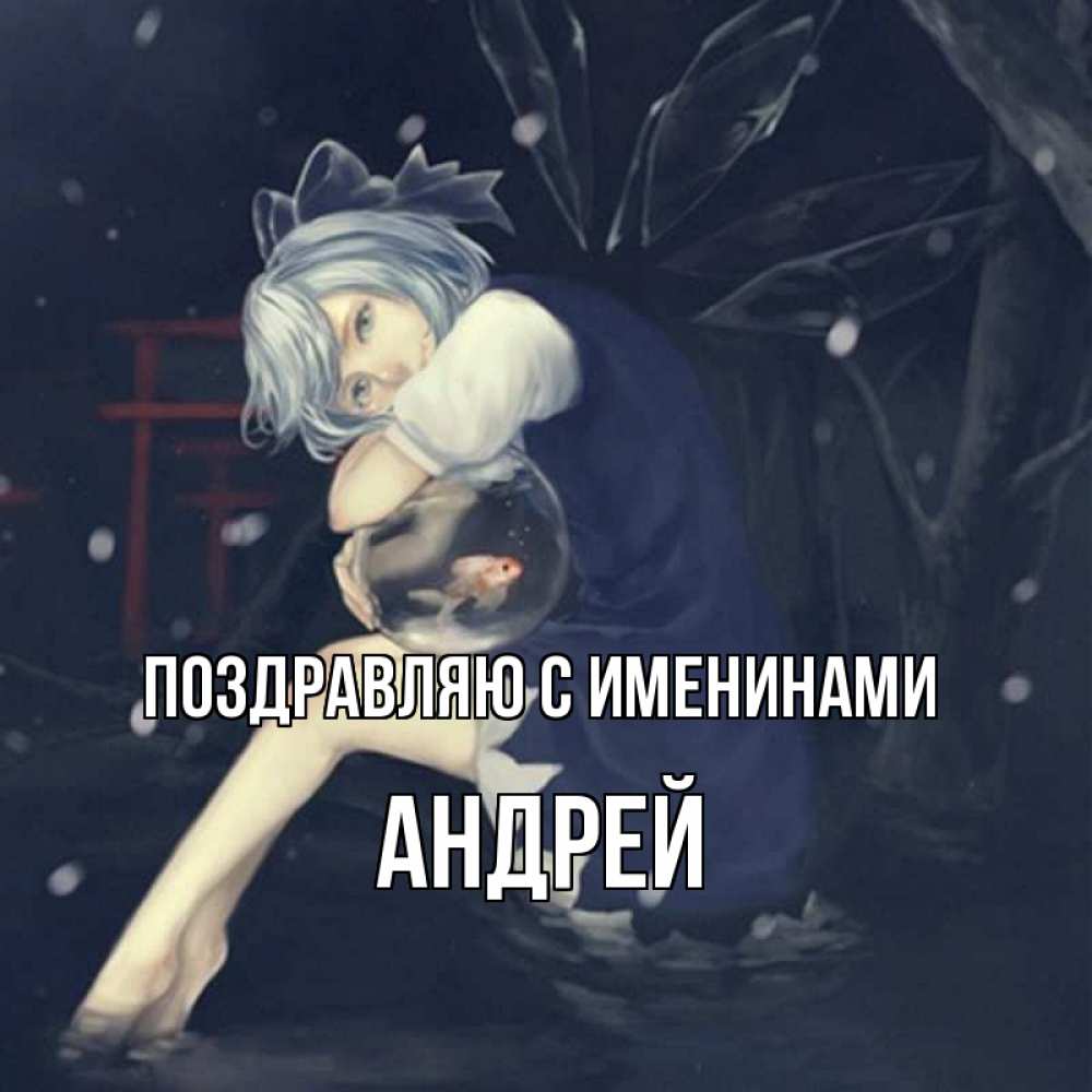 Открытка Поздравляю с именинами Андрей. девочка скучает. рыбка в аквариуме