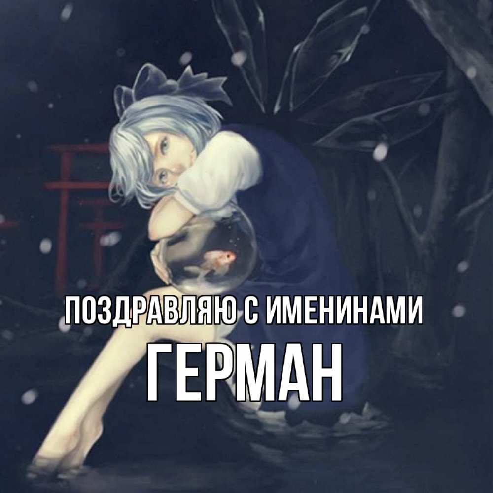 Открытка Поздравляю с именинами Герман. девочка скучает. рыбка в аквариуме
