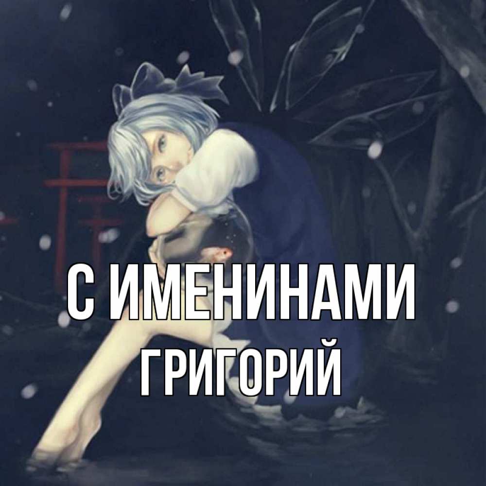 Открытка С именинами Григорий. девочка скучает. рыбка в аквариуме
