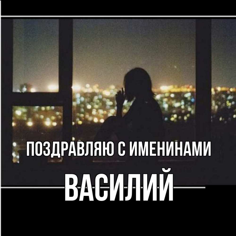 Открытка Поздравляю с именинами Василий. скучно сидеть одной. у окна