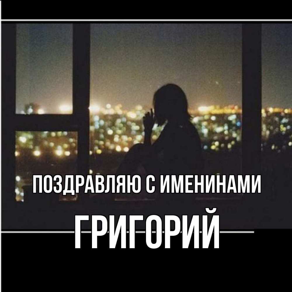 Открытка Поздравляю с именинами Григорий. скучно сидеть одной. у окна