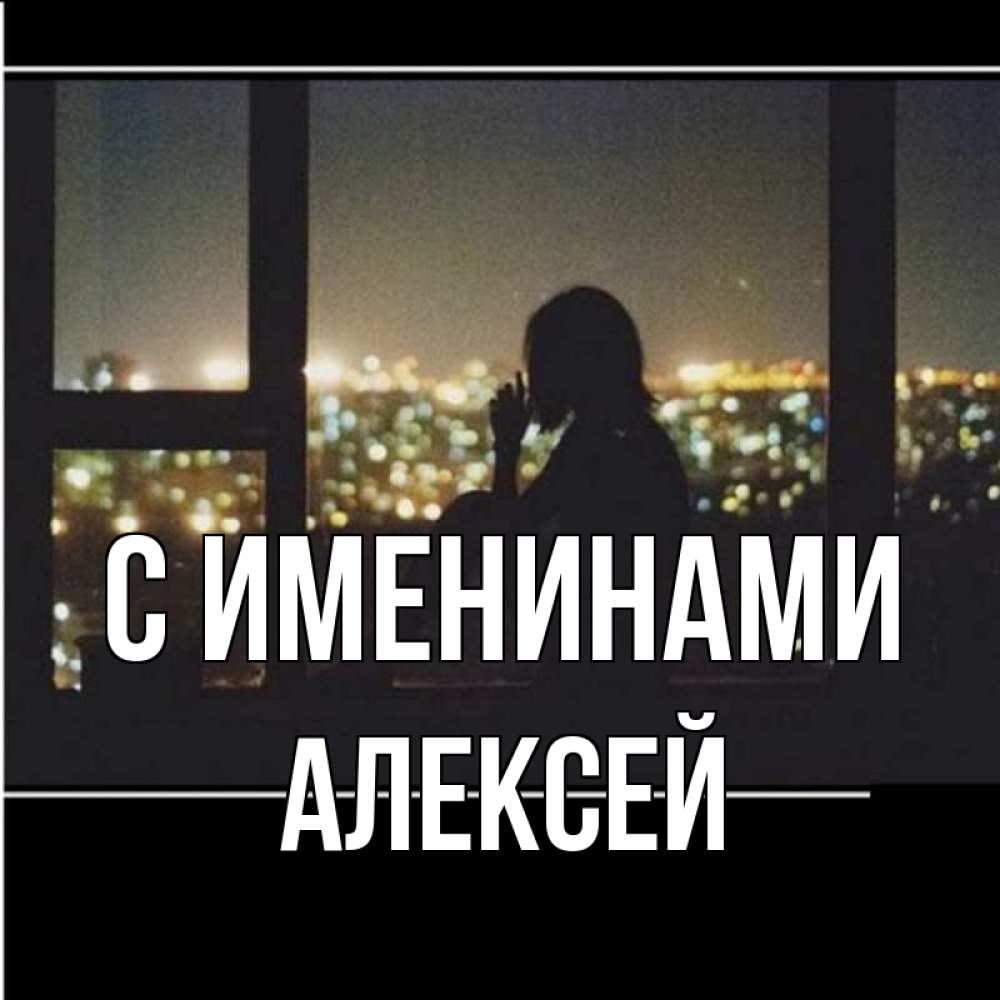 Открытка С именинами Алексей. скучно сидеть одной. у окна