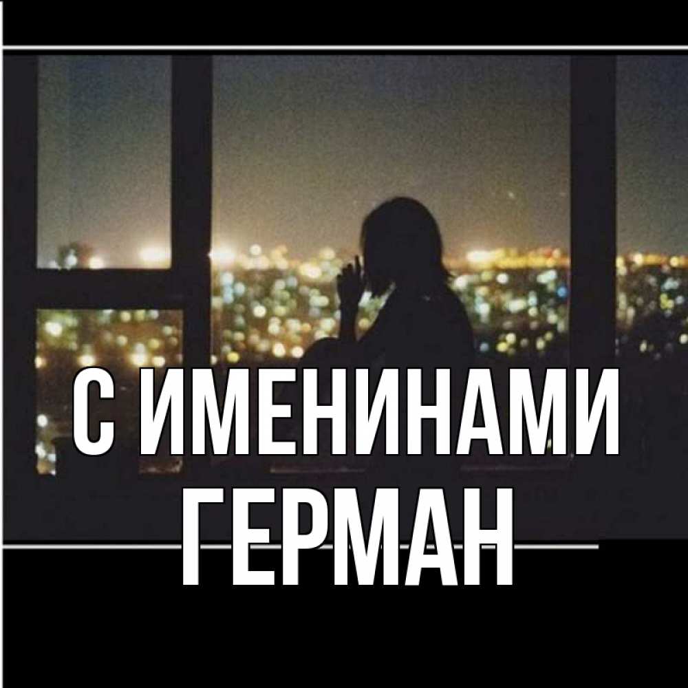 Открытка С именинами Герман. скучно сидеть одной. у окна