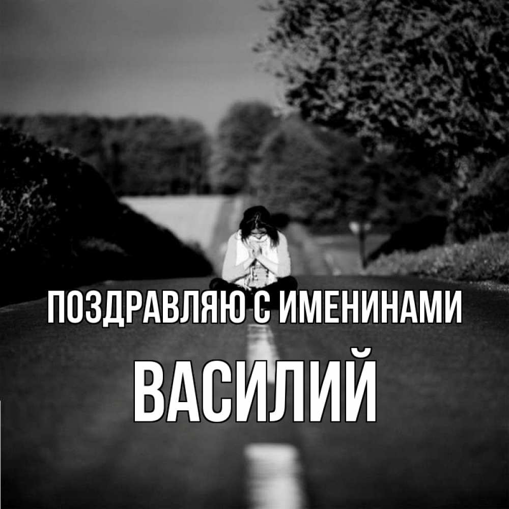 Открытка Поздравляю с именинами Василий. посидим на дороге. фото