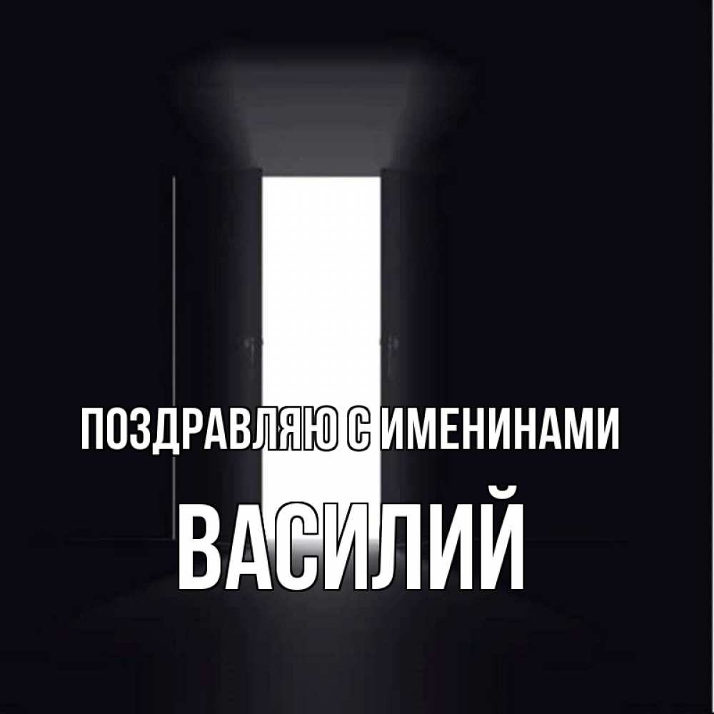 Открытка Поздравляю с именинами Василий. надеюсь скоро встретимся. дверь и свет