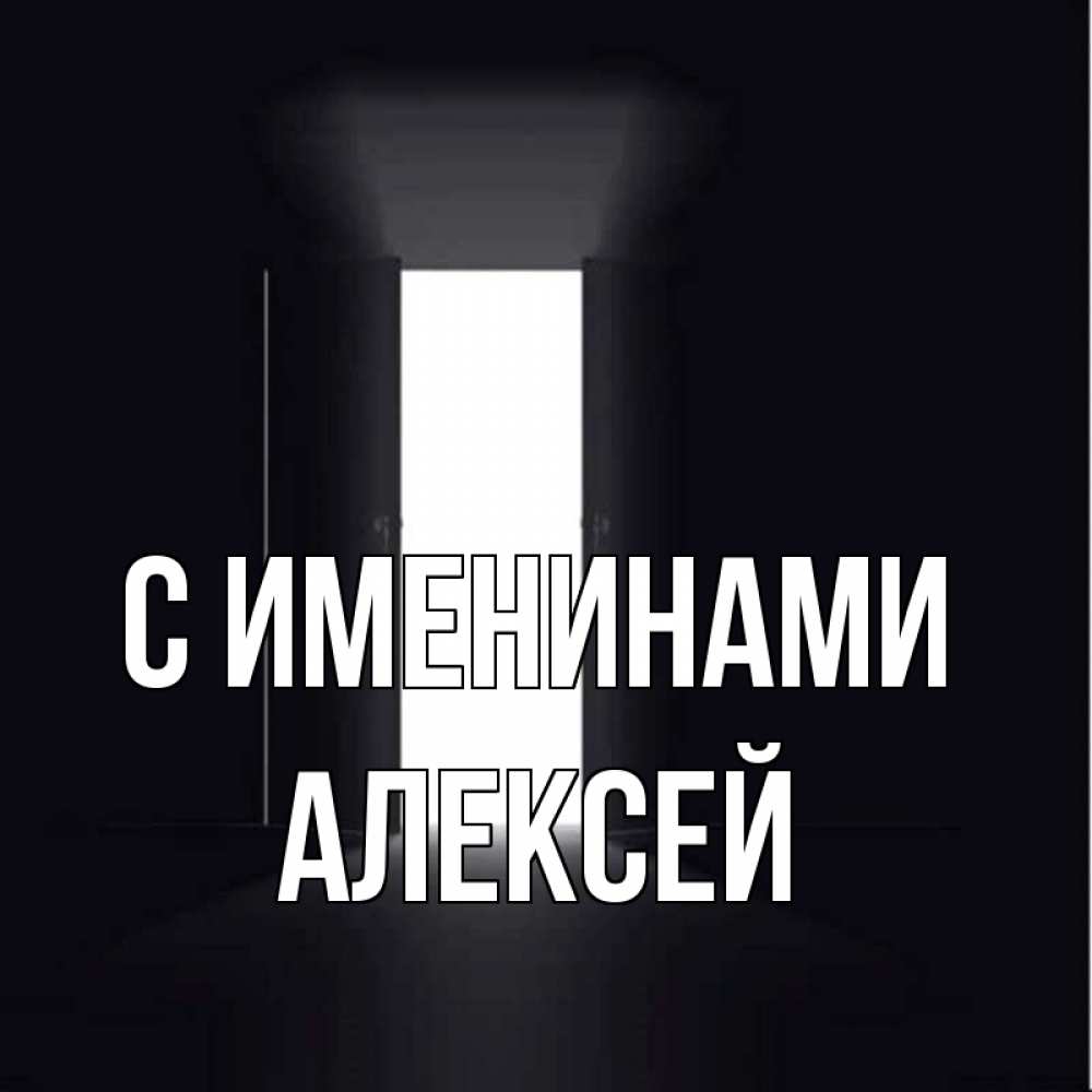 Открытка С именинами Алексей. надеюсь скоро встретимся. дверь и свет