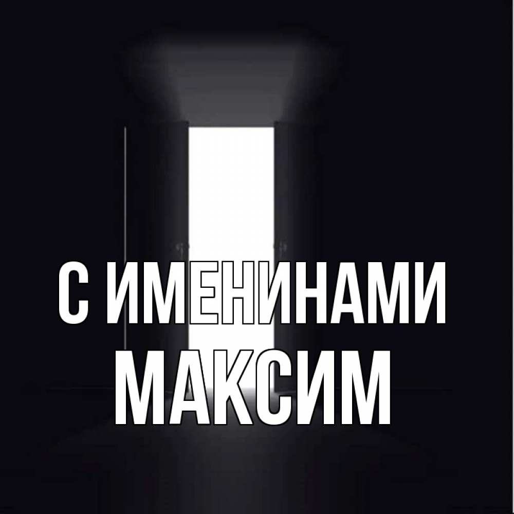 Открытка С именинами Максим. надеюсь скоро встретимся. дверь и свет
