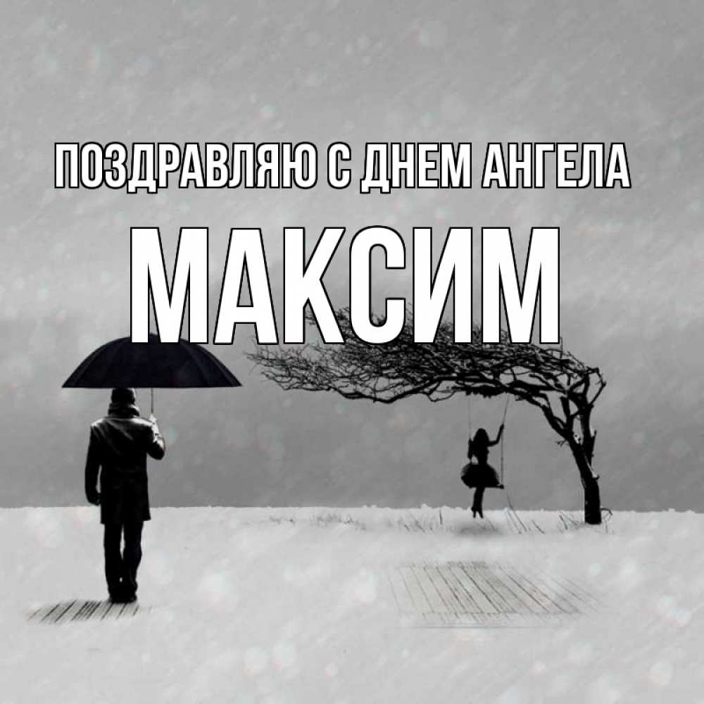 Открытка Поздравляю с днем Ангела Максим. девочка на качеле. мужчина с зонтом