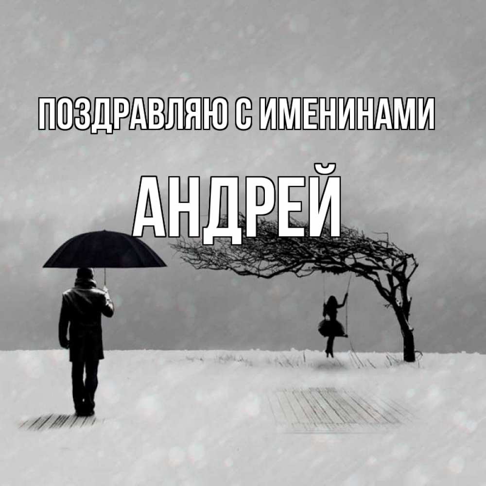 Открытка Поздравляю с именинами Андрей. девочка на качеле. мужчина с зонтом