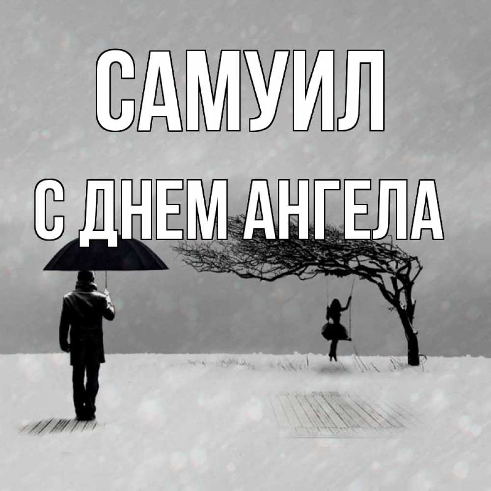 Открытка Самуил С днем ангела. девочка на качеле. мужчина с зонтом