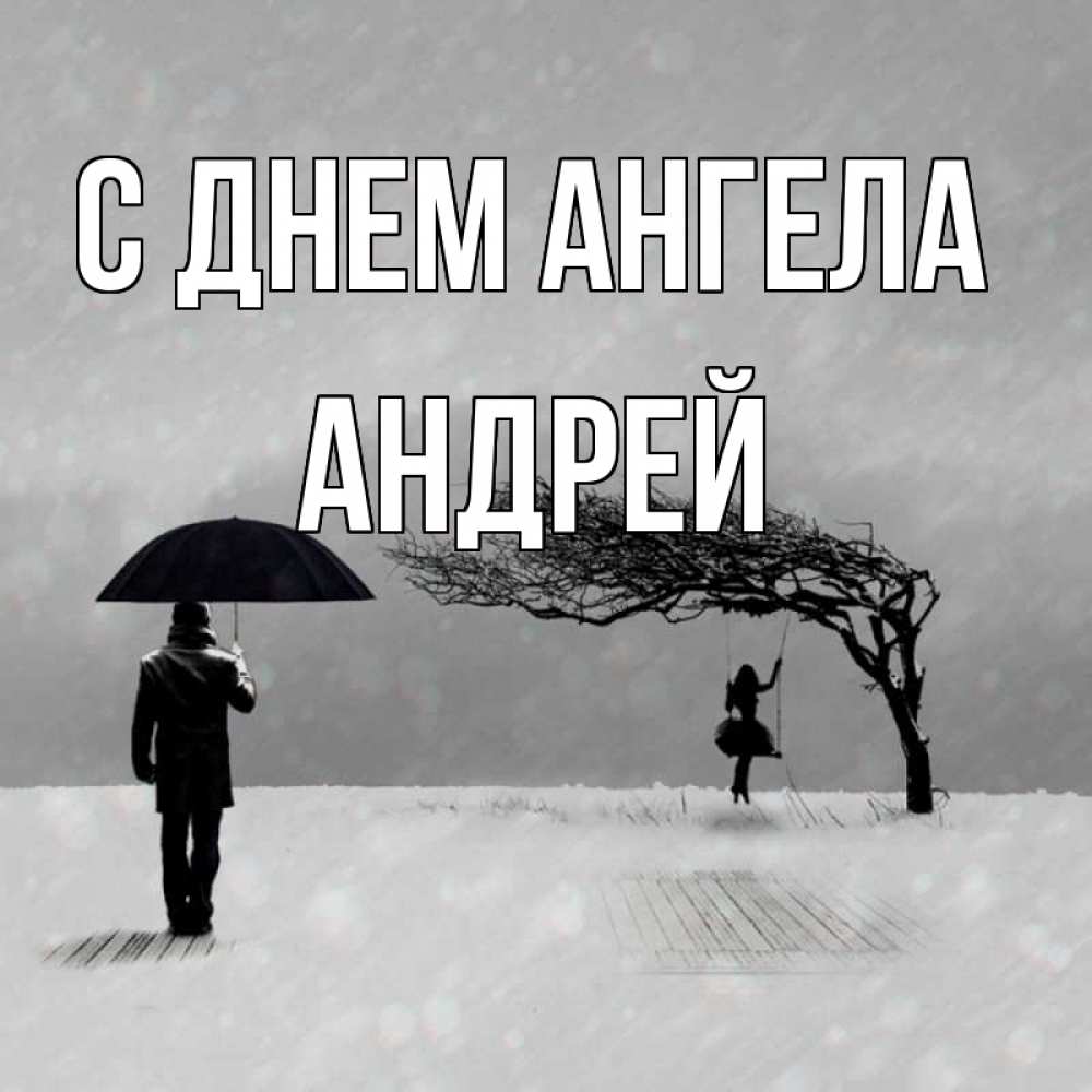 Открытка С днем Ангела Андрей. девочка на качеле. мужчина с зонтом