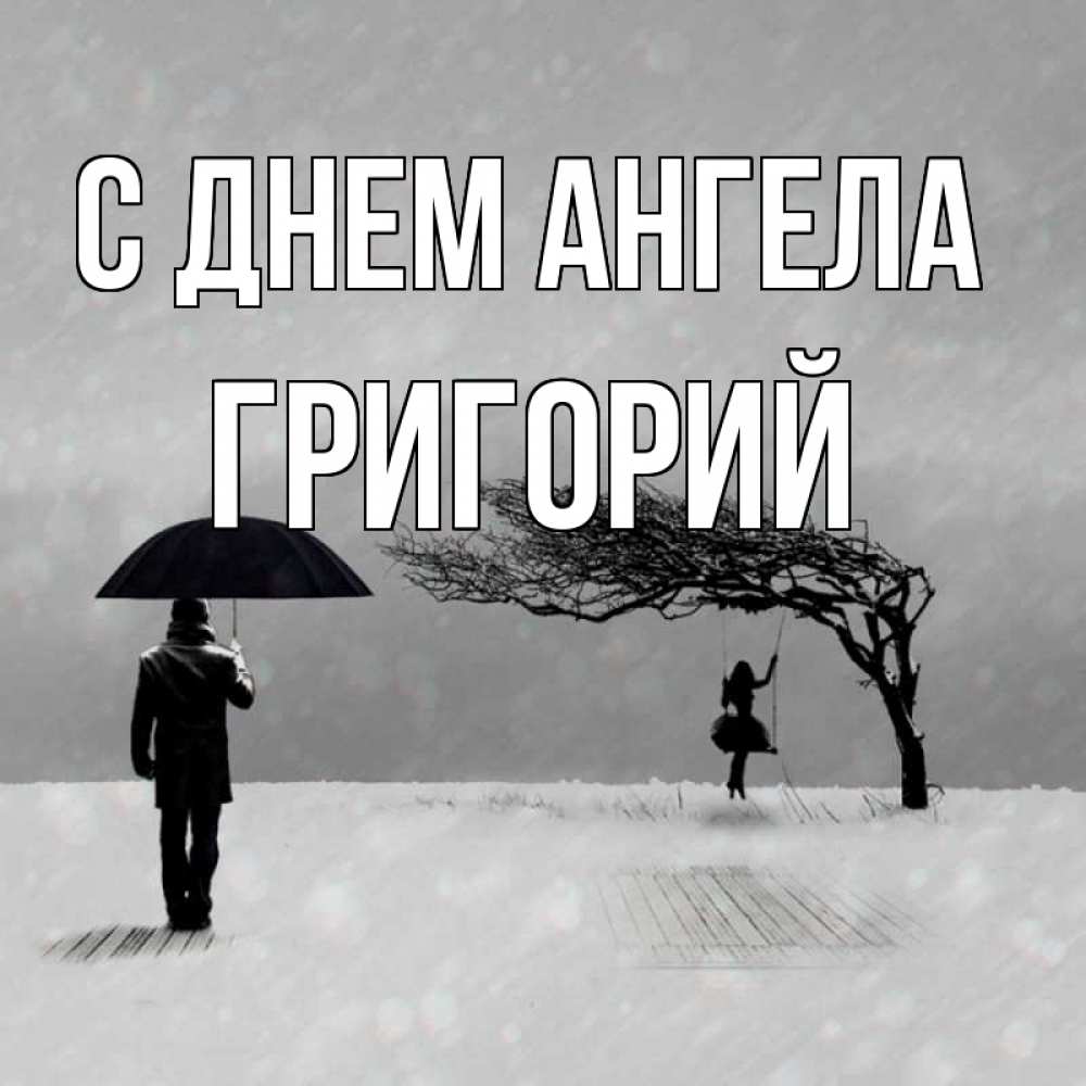 Открытка С днем Ангела Григорий. девочка на качеле. мужчина с зонтом