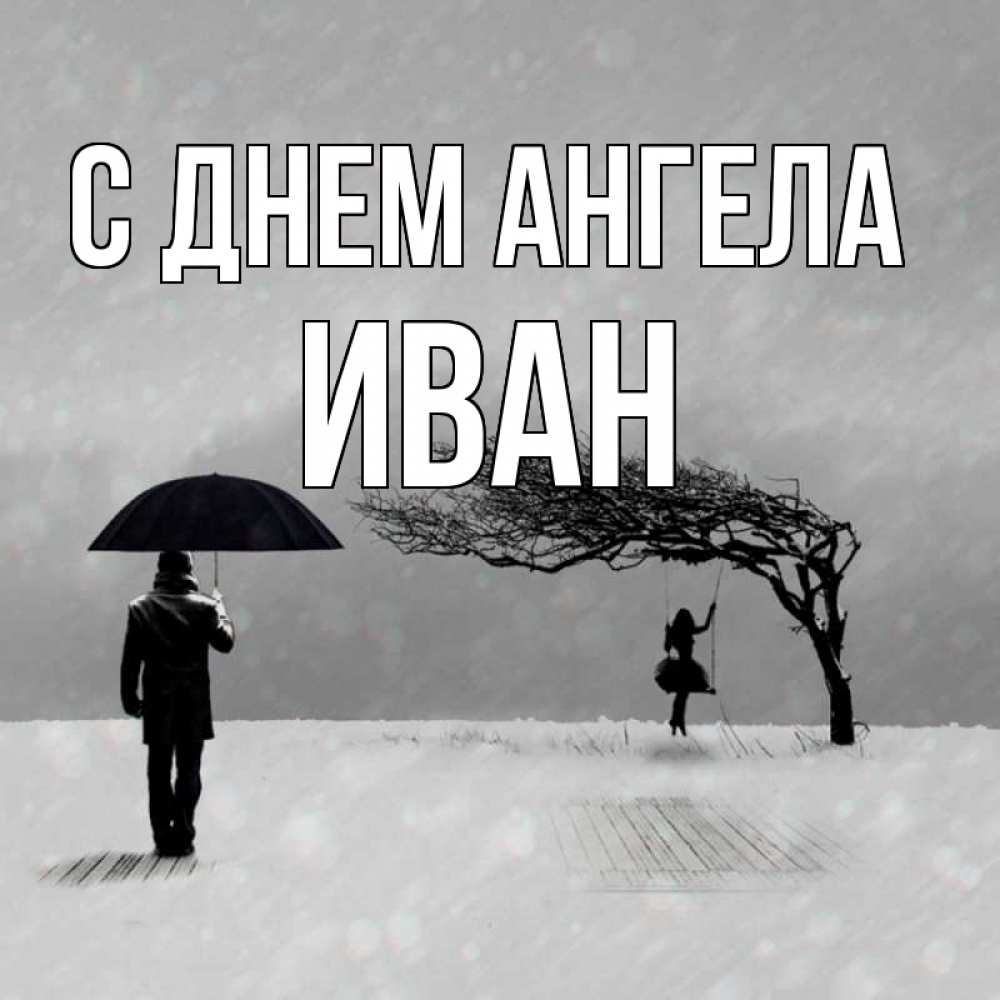 Открытка С днем Ангела Иван. девочка на качеле. мужчина с зонтом