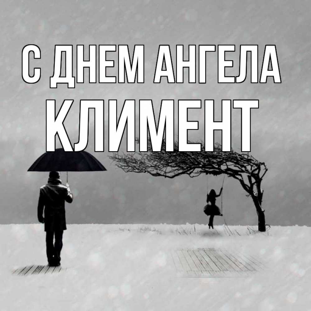 Открытка С днем Ангела Климент. девочка на качеле. мужчина с зонтом