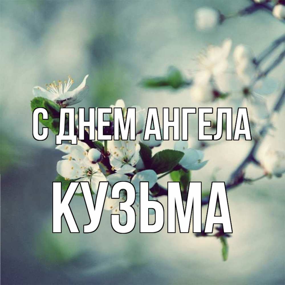 Открытка С днем Ангела Кузьма. яблоня цветет. весна