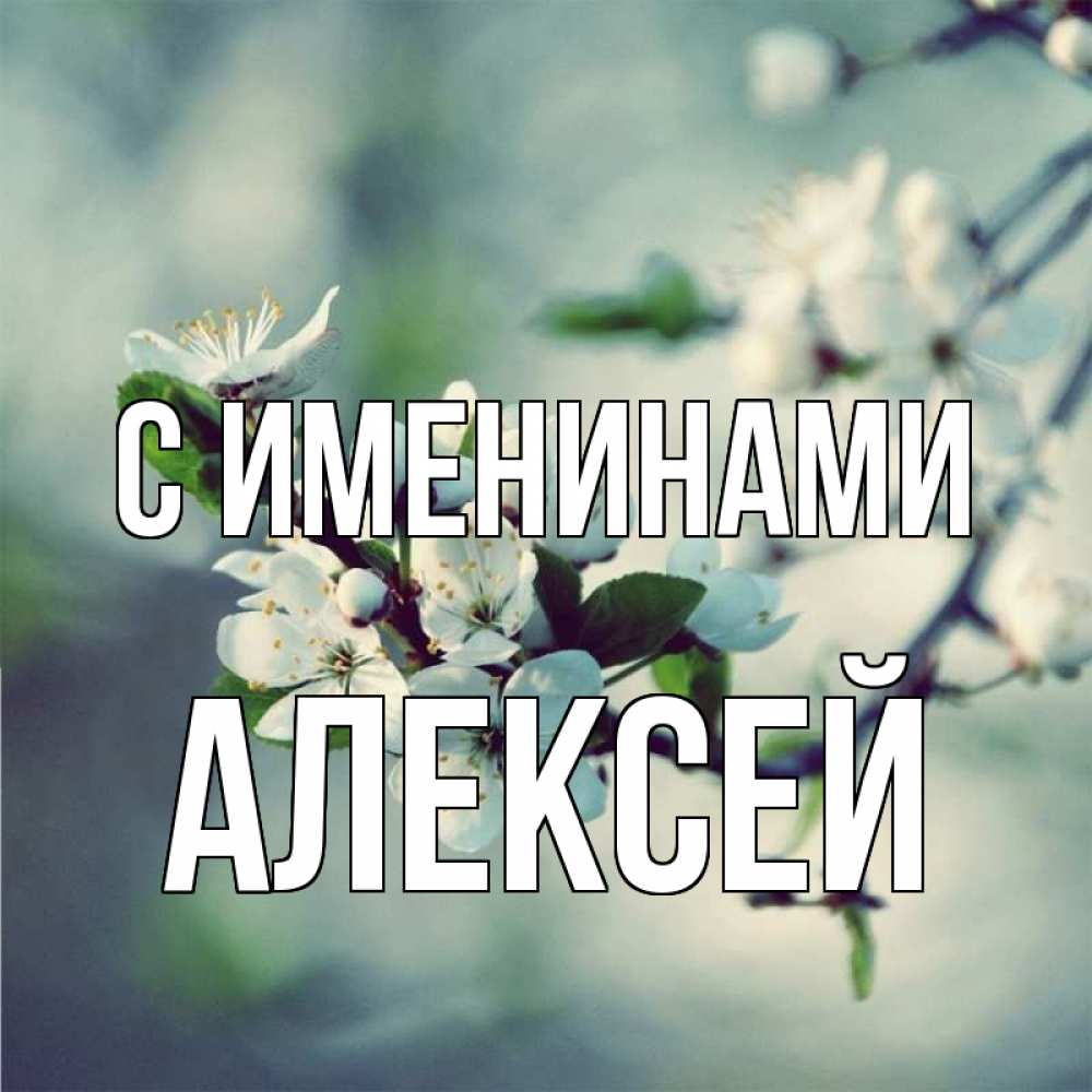 Открытка С именинами Алексей. яблоня цветет. весна