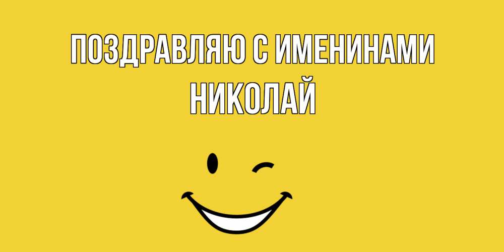 Открытка Поздравляю с именинами Николай. желтый смайл. смайл