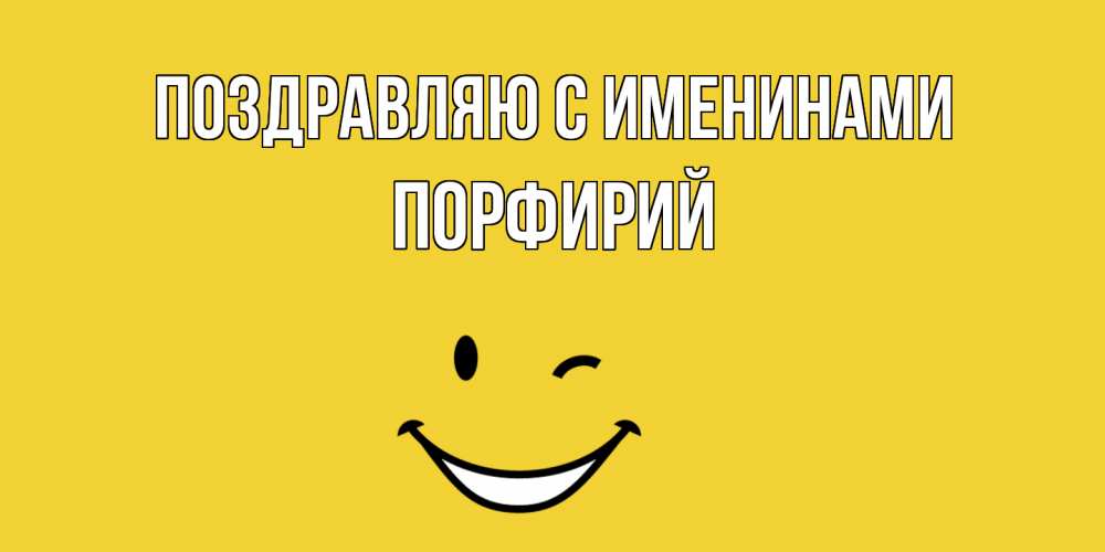 Открытка Поздравляю с именинами Порфирий. желтый смайл. смайл