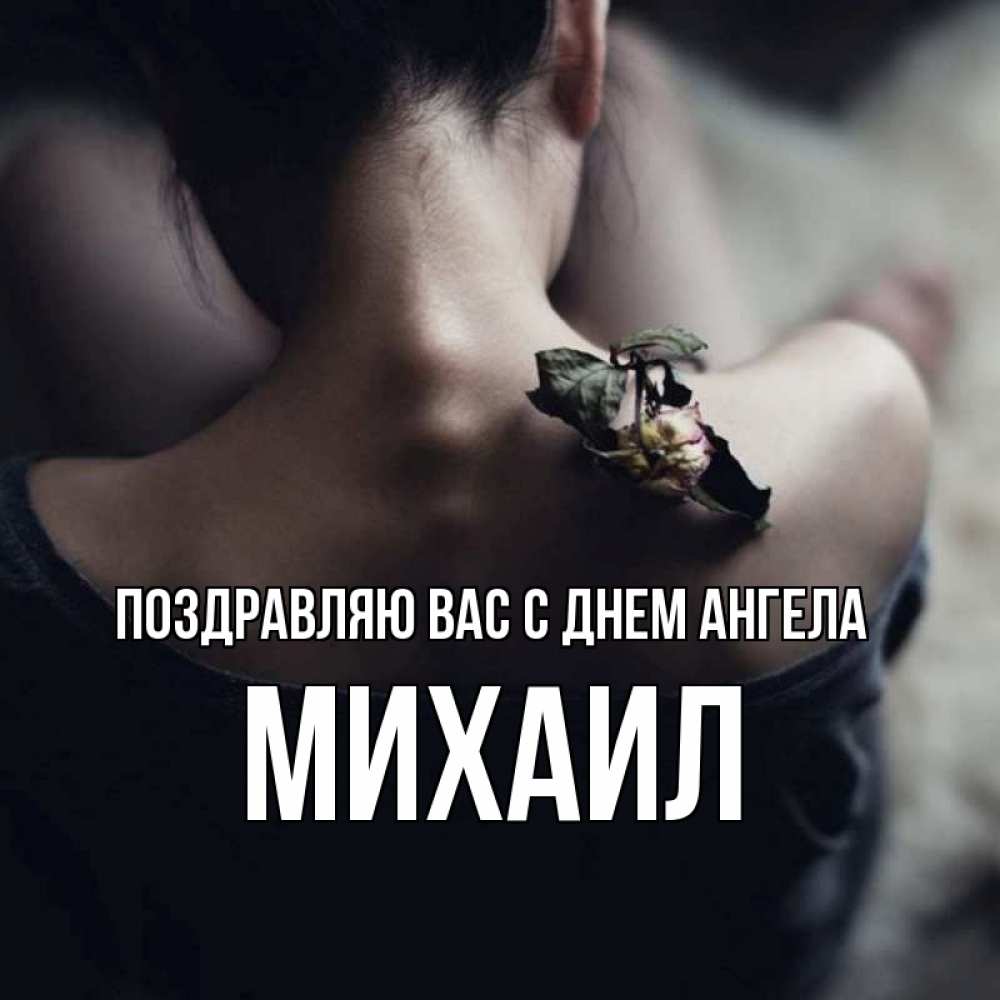 Открытка Поздравляю Вас с днем Ангела Михаил. девушка. засох цветок