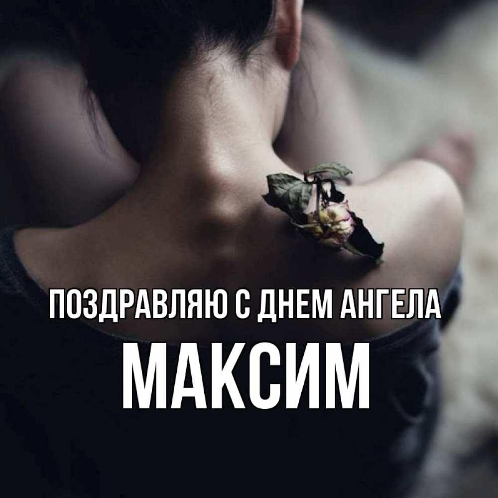 Открытка Поздравляю с днем Ангела Максим. девушка. засох цветок