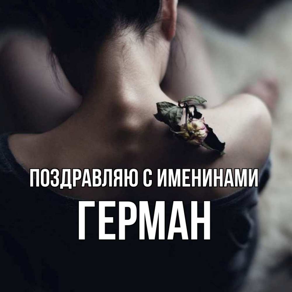 Открытка Поздравляю с именинами Герман. девушка. засох цветок