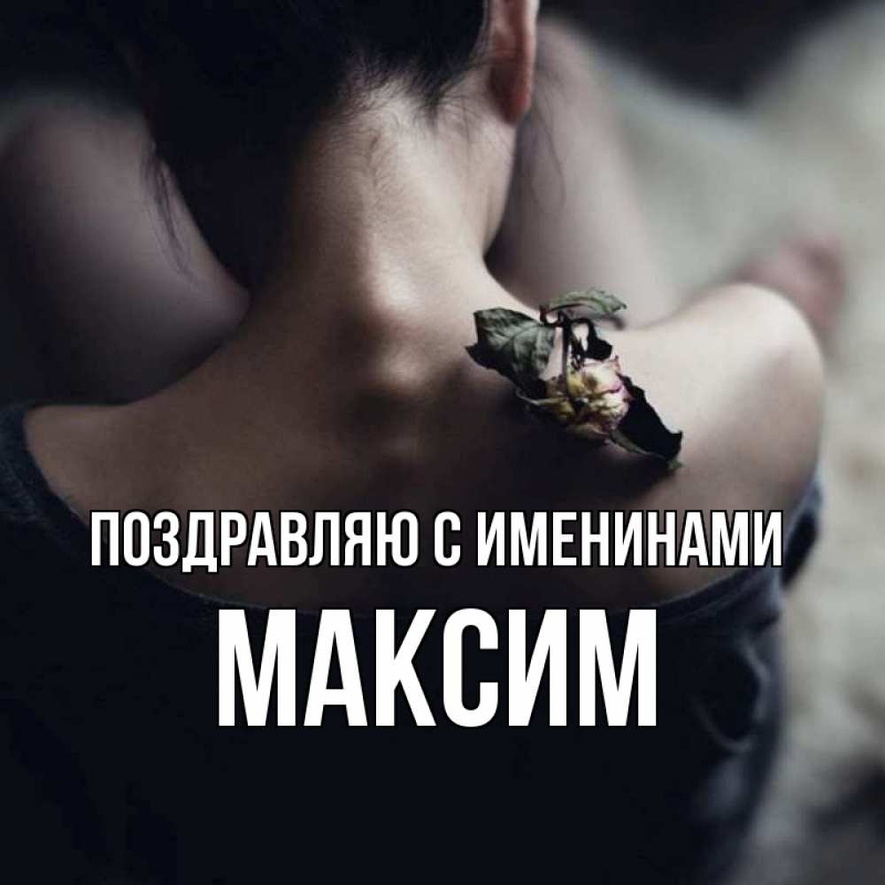Открытка Поздравляю с именинами Максим. девушка. засох цветок