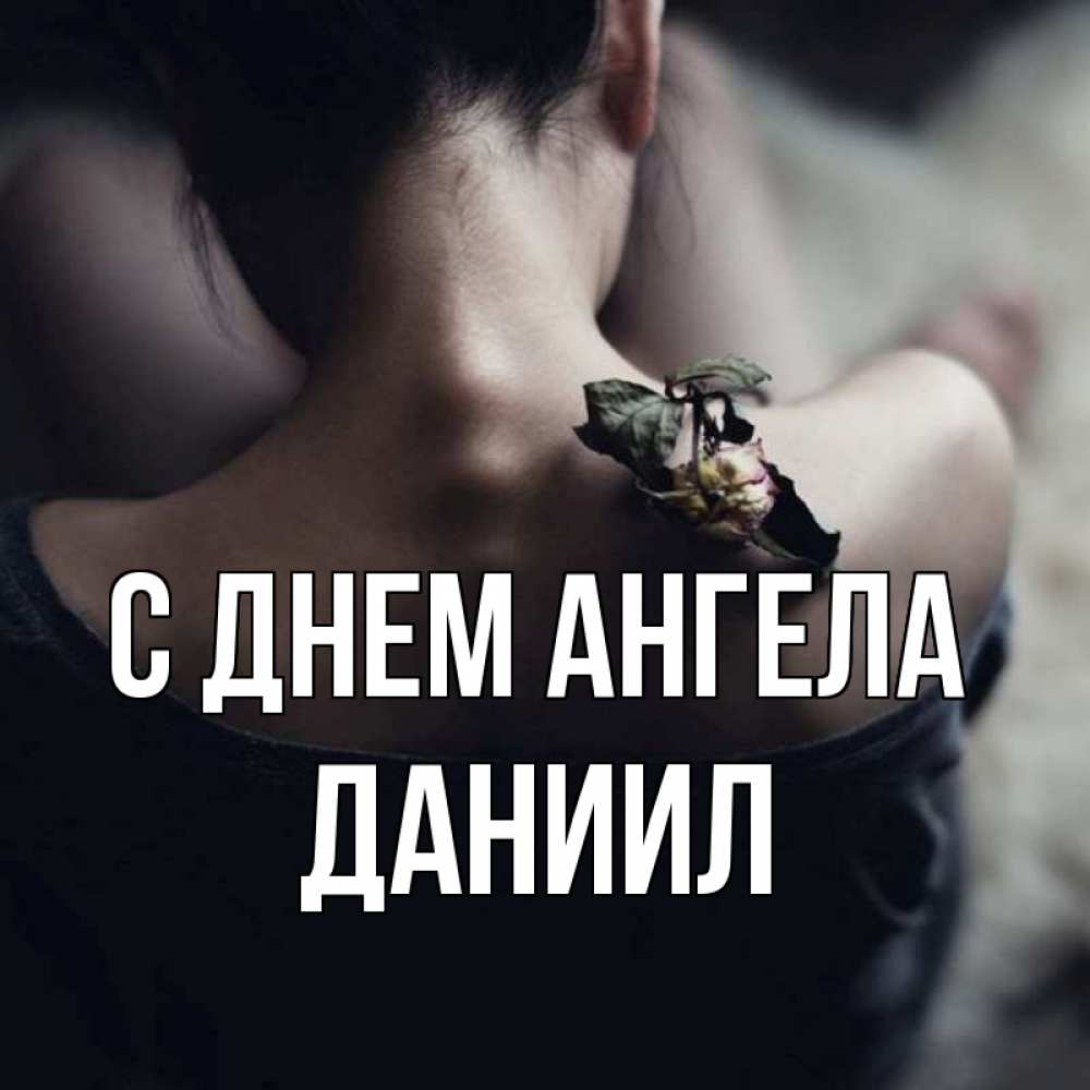 Открытка С днем Ангела Даниил. девушка. засох цветок