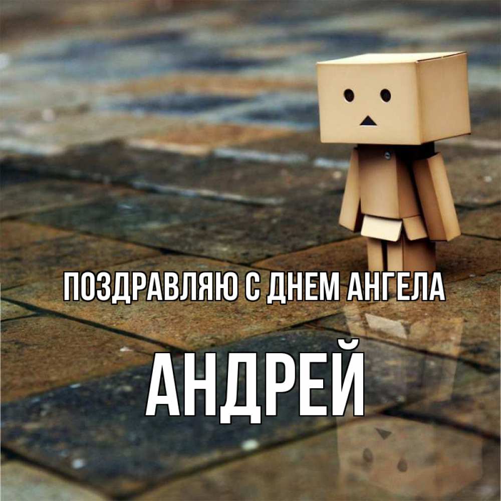 Открытка Поздравляю с днем Ангела Андрей. майнкрафтик скучает. куколка из картона в стиле майнкрафт