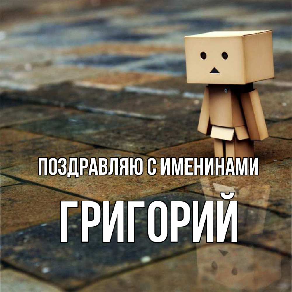 Открытка Поздравляю с именинами Григорий. майнкрафтик скучает. куколка из картона в стиле майнкрафт