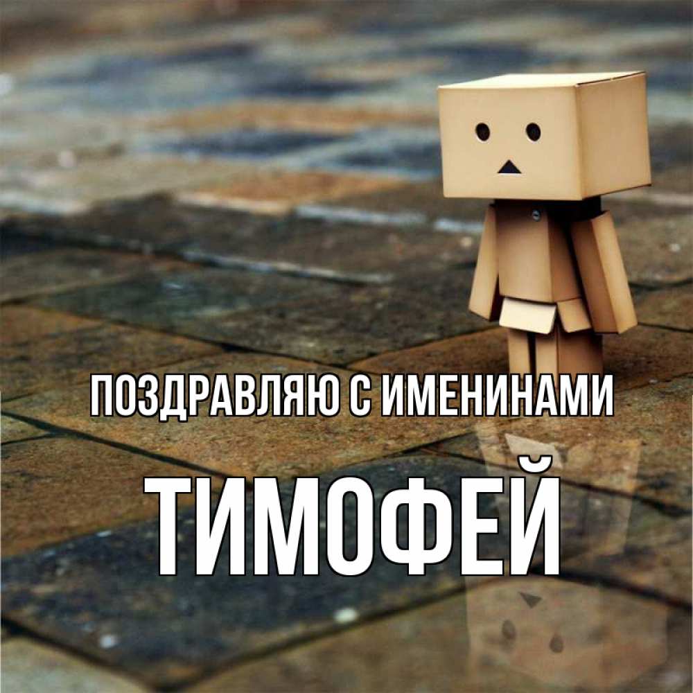 Открытка Поздравляю с именинами Тимофей. майнкрафтик скучает. куколка из картона в стиле майнкрафт