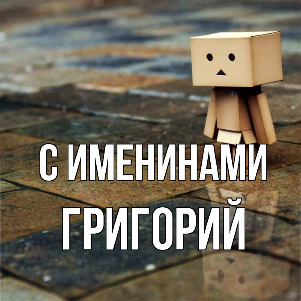 Открытка С именинами Григорий. майнкрафтик скучает. куколка из картона в стиле майнкрафт