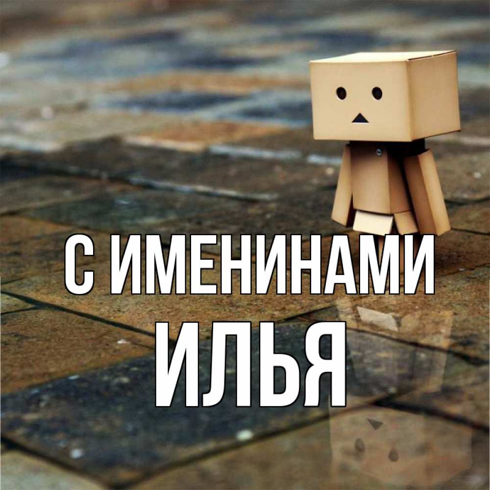 Открытка С именинами Илья. майнкрафтик скучает. куколка из картона в стиле майнкрафт