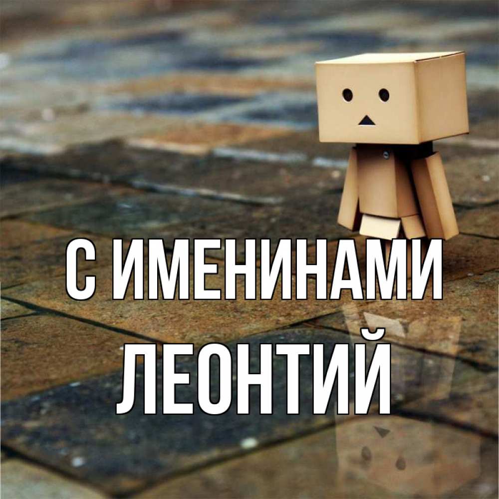 Открытка С именинами Леонтий. майнкрафтик скучает. куколка из картона в стиле майнкрафт