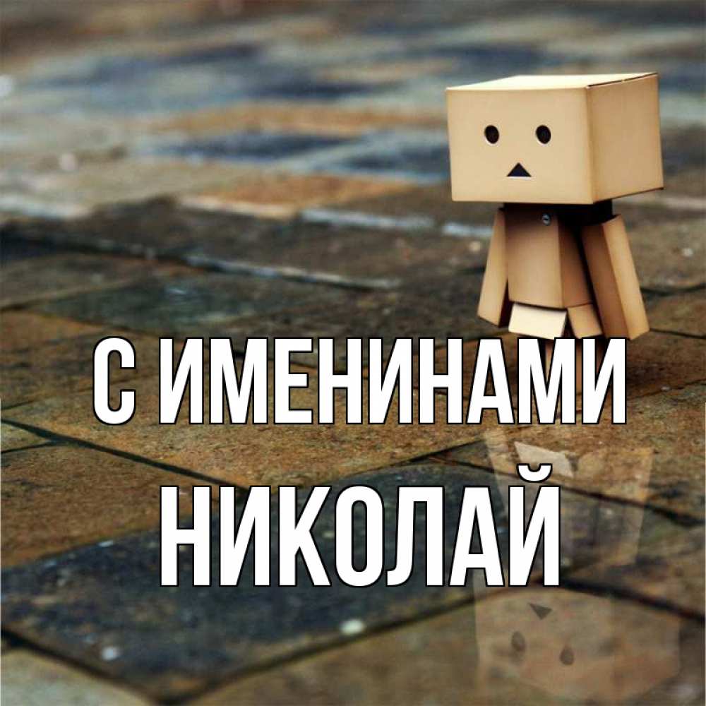 Открытка С именинами Николай. майнкрафтик скучает. куколка из картона в стиле майнкрафт