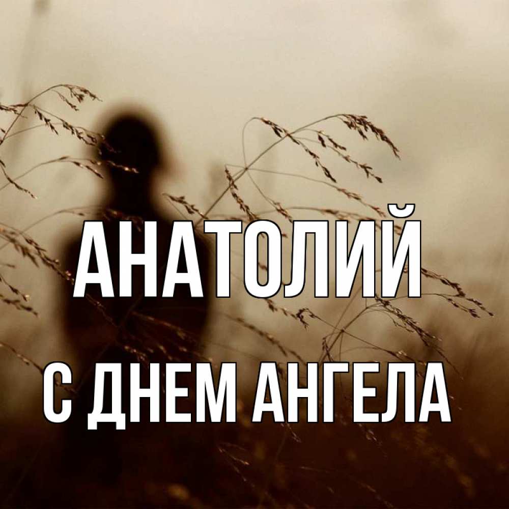 Открытка Анатолий С днем ангела. колосятся растения . силуэт девушки