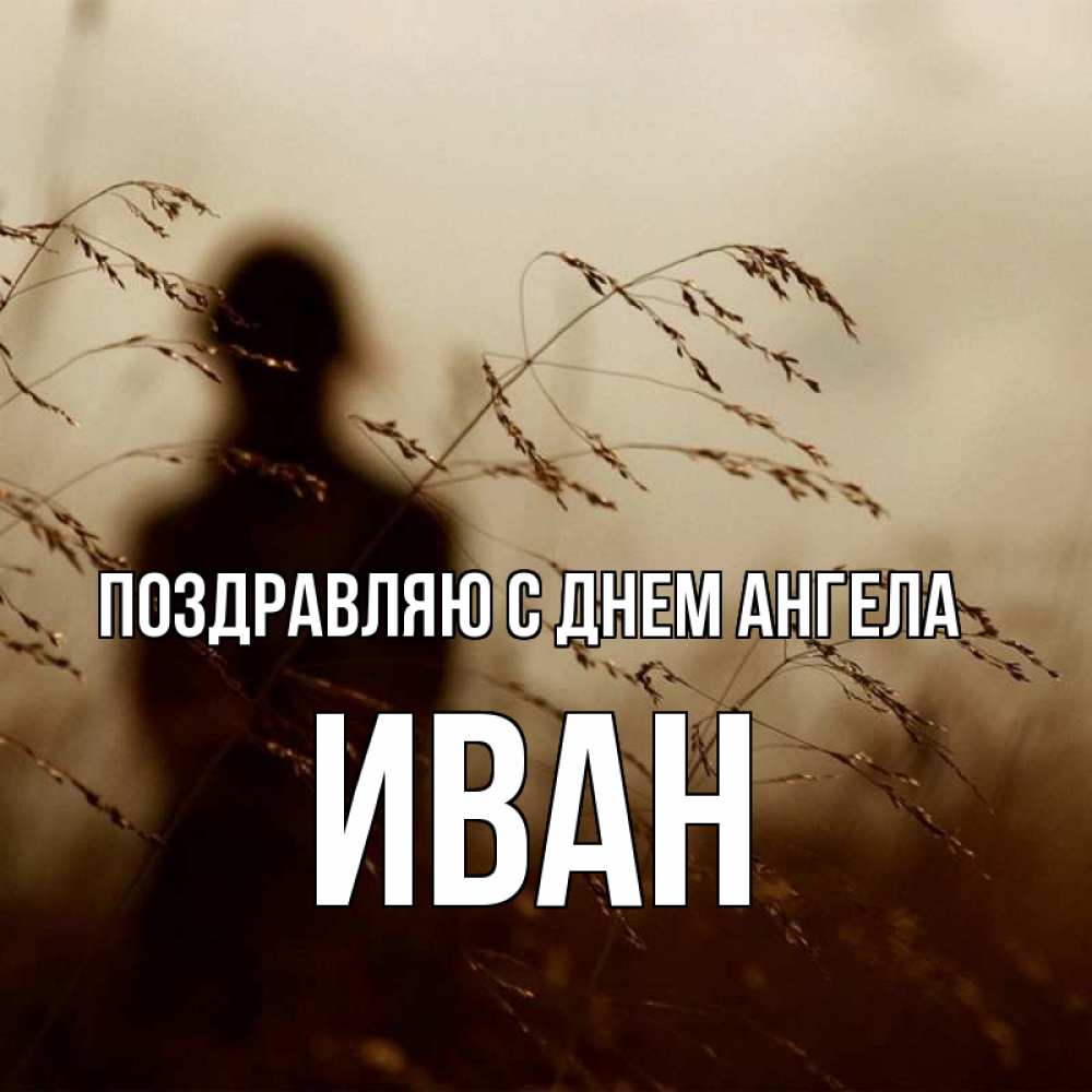 Открытка Поздравляю с днем Ангела Иван. колосятся растения . силуэт девушки