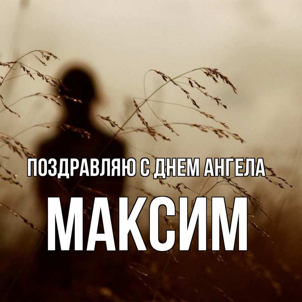 Открытка Поздравляю с днем Ангела Максим. колосятся растения . силуэт девушки