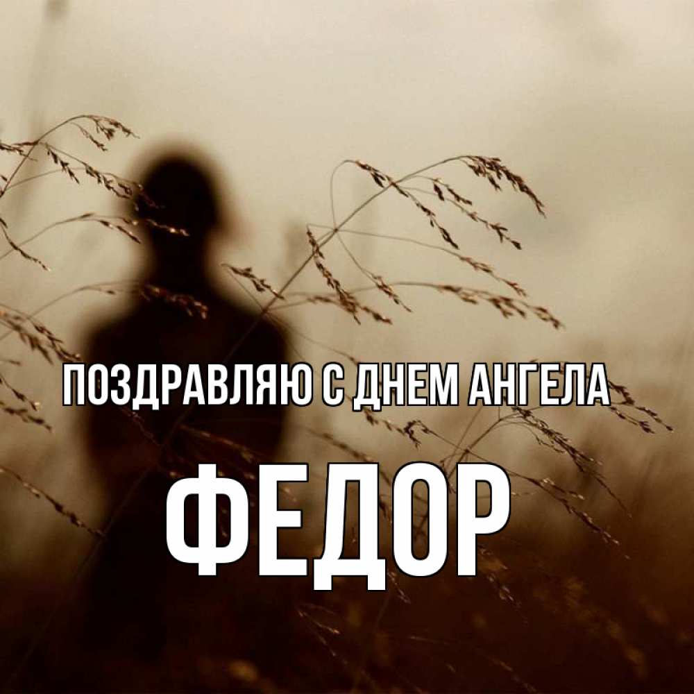Открытка Поздравляю с днем Ангела Федор. колосятся растения . силуэт девушки