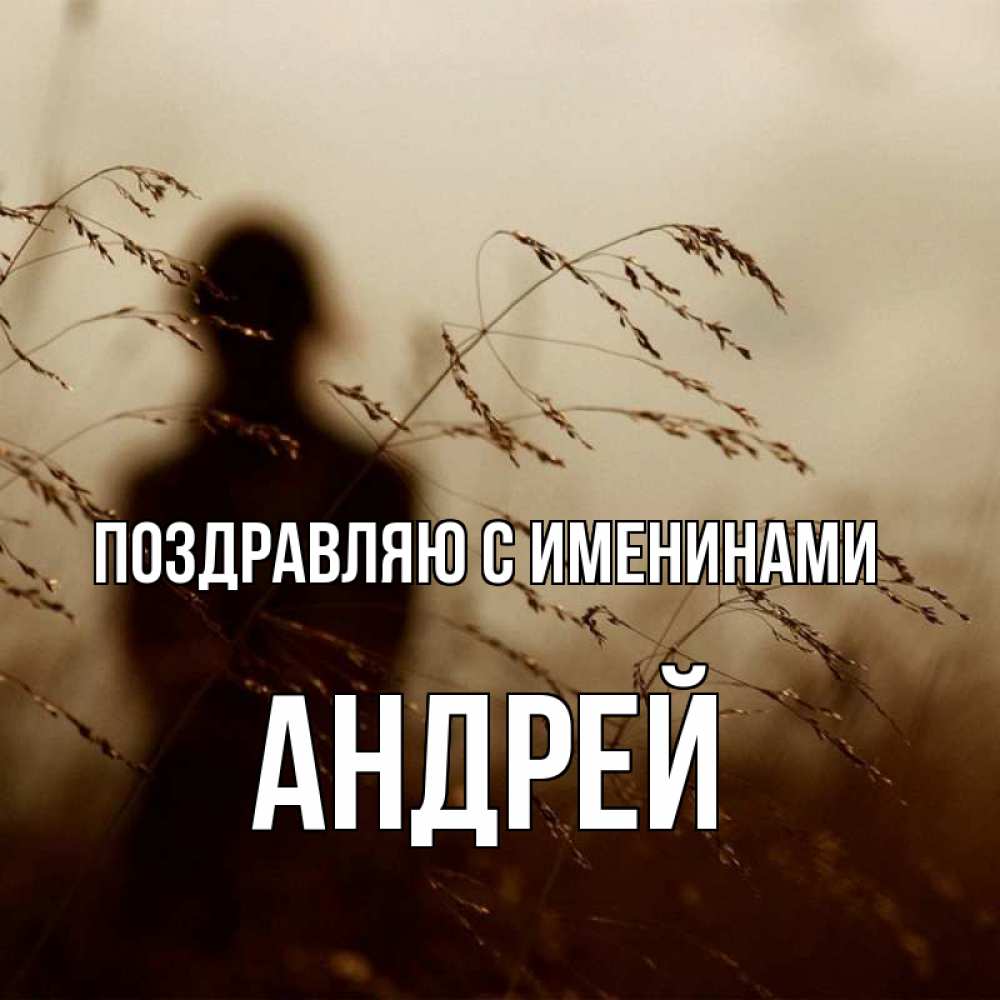 Открытка Поздравляю с именинами Андрей. колосятся растения . силуэт девушки