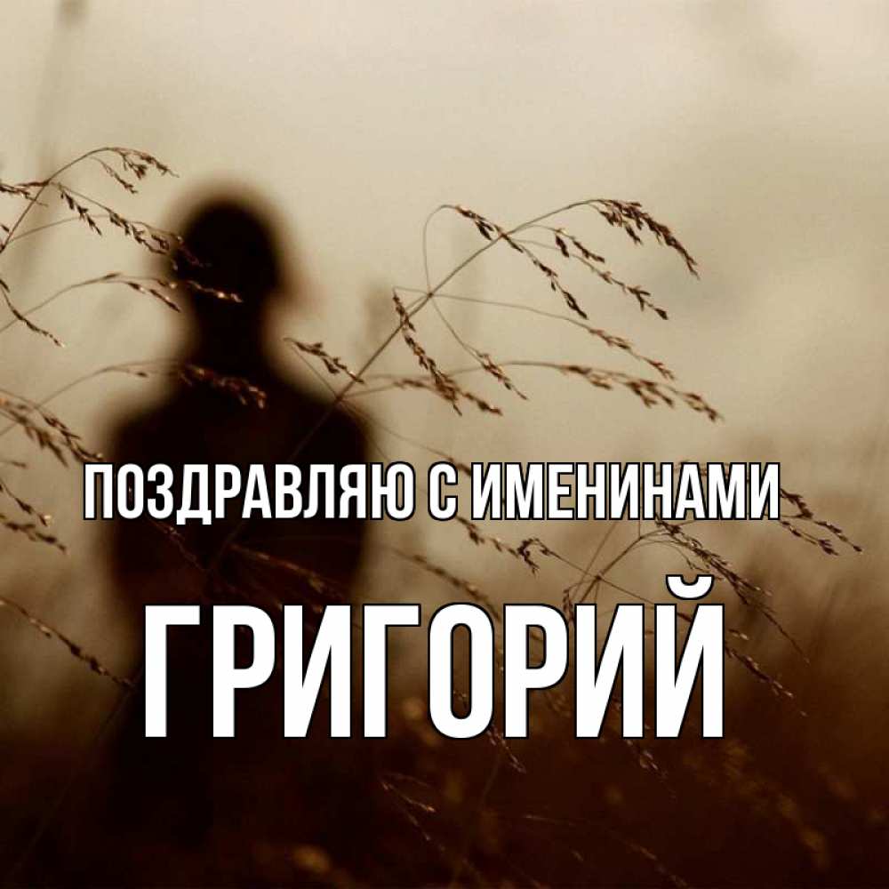 Открытка Поздравляю с именинами Григорий. колосятся растения . силуэт девушки