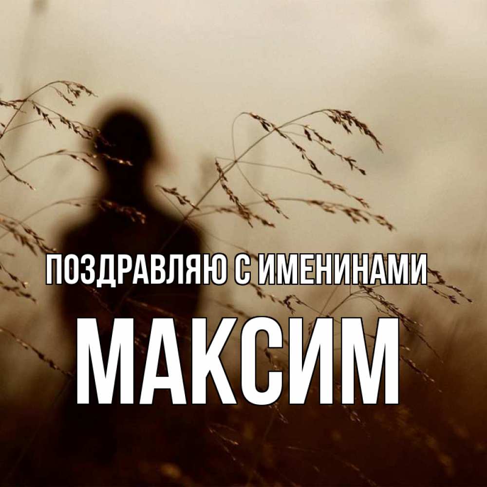 Открытка Поздравляю с именинами Максим. колосятся растения . силуэт девушки