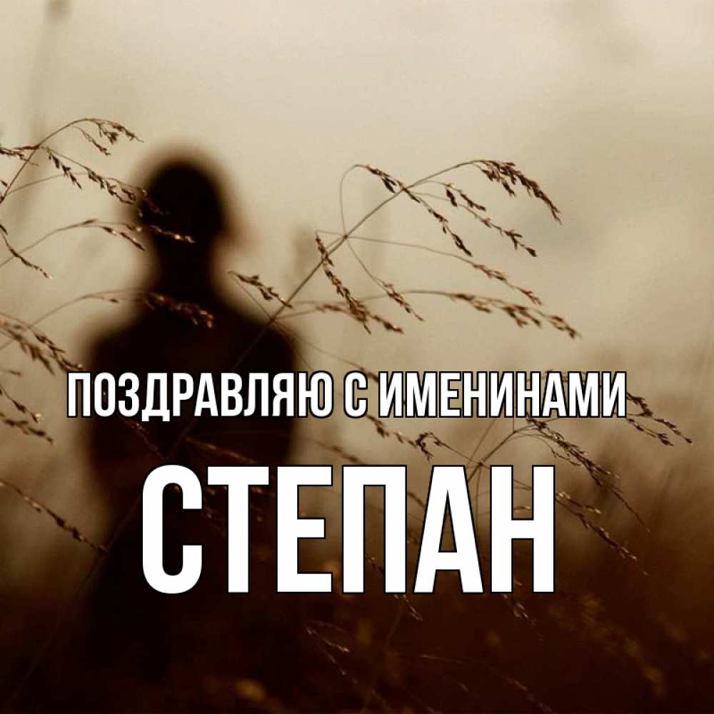 Открытка Поздравляю с именинами Степан. колосятся растения . силуэт девушки