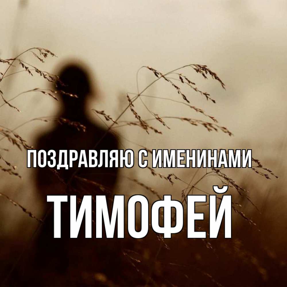 Открытка Поздравляю с именинами Тимофей. колосятся растения . силуэт девушки