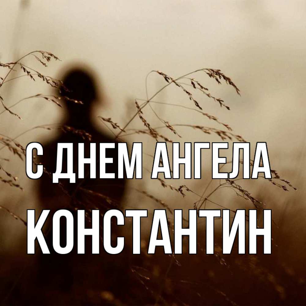 Открытка С днем Ангела Константин. колосятся растения . силуэт девушки