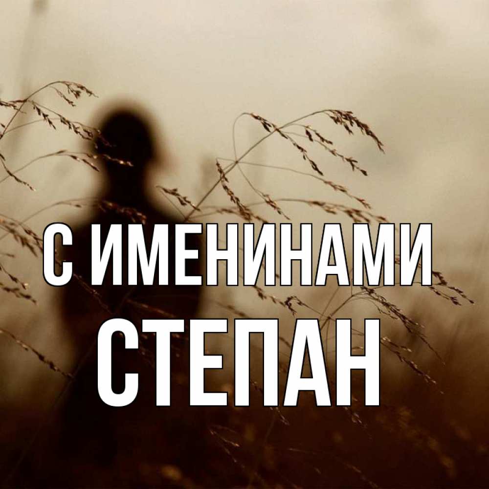 Открытка С именинами Степан. колосятся растения . силуэт девушки