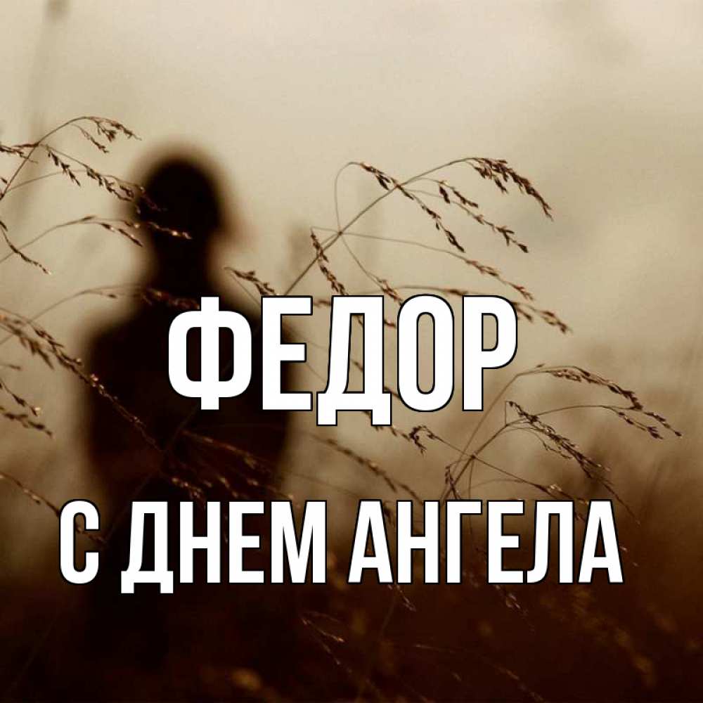 Открытка Федор С днем ангела. колосятся растения . силуэт девушки