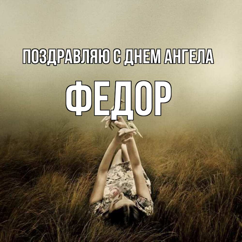 Открытка Поздравляю с днем Ангела Федор. туман. девушка с голубями
