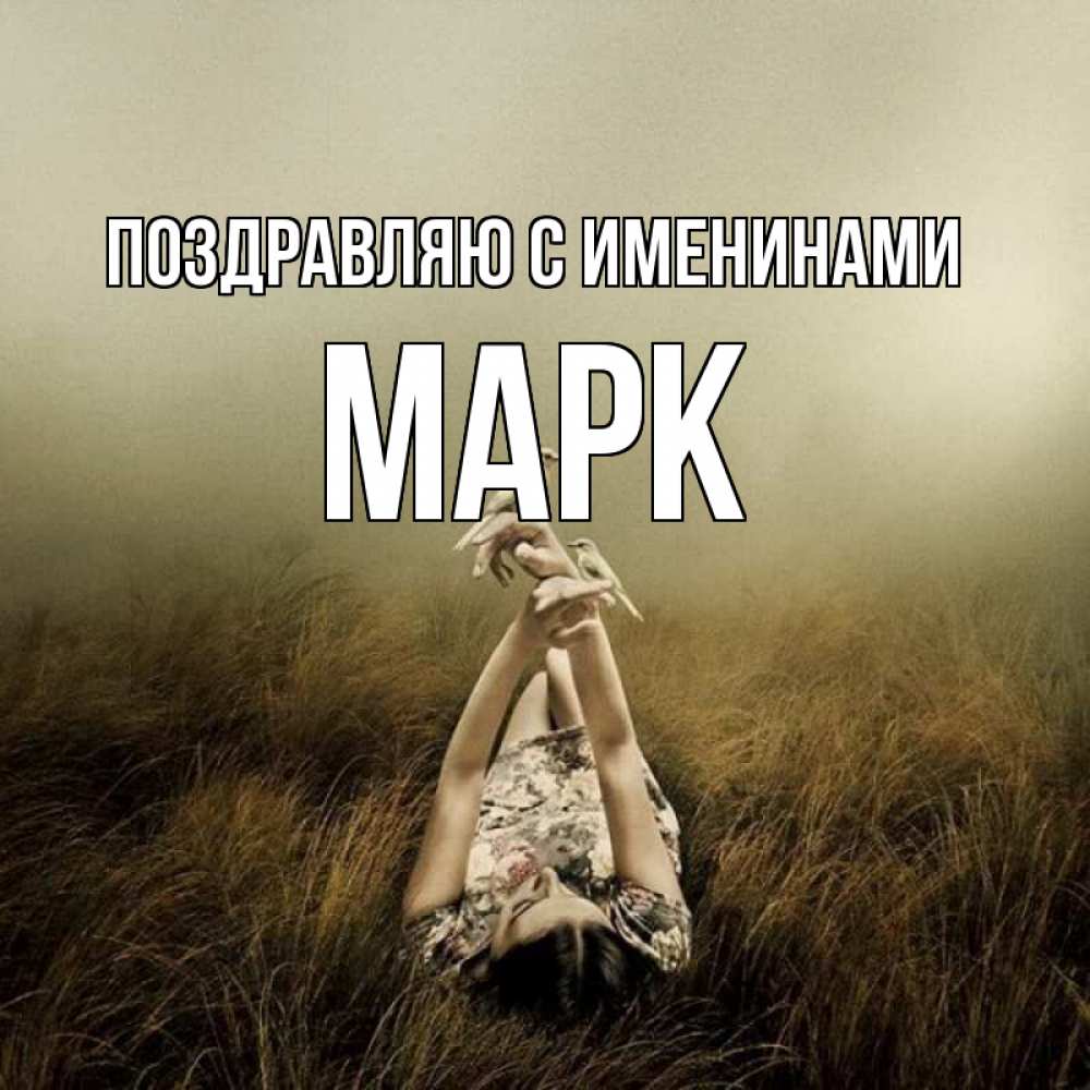 Открытка Поздравляю с именинами Марк. туман. девушка с голубями